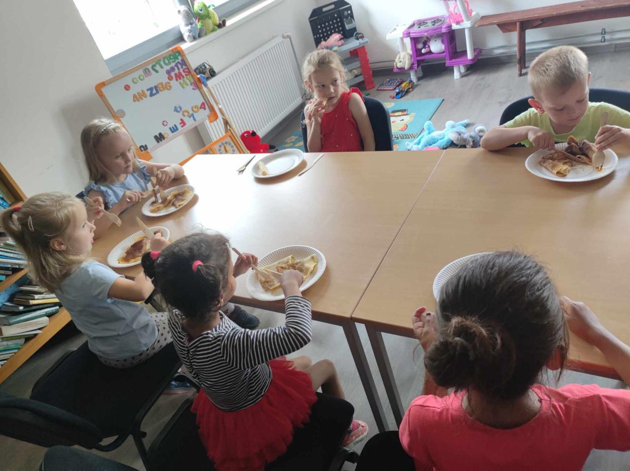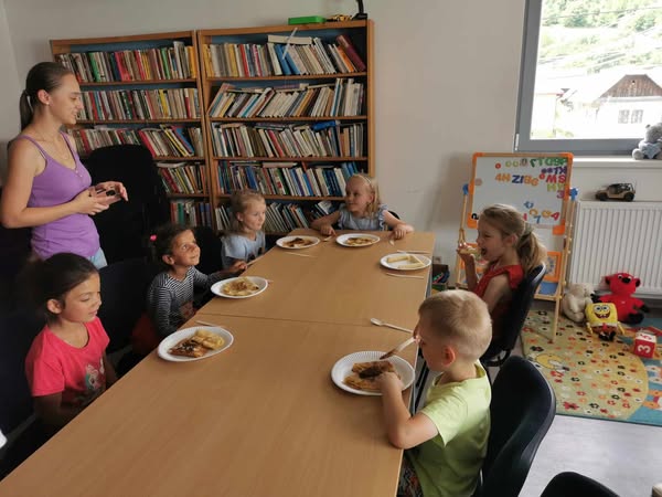 Nenementorka zorganizovala aktivitu, kde sa deti učili ako správne držať príbor . Pochutili si na palacinkách a po dobrom jedle sa spoločne zahrali.