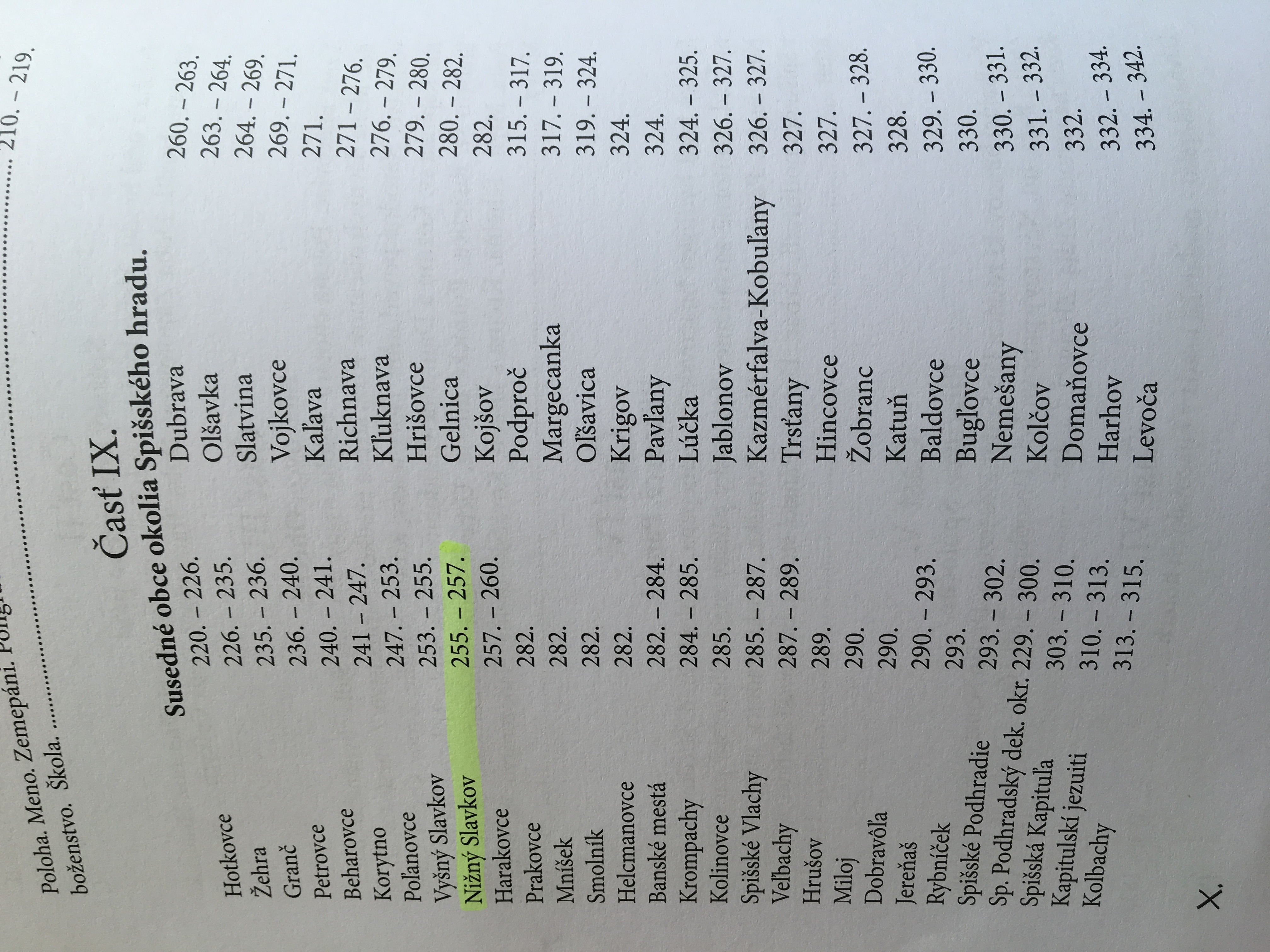 Z textu vyberáme: „Nižný Slavkov, priestranná osada asi na 2 km od Vyšného Slavkova, leží v Šariši pri udržiavanej ceste po dvoch stranách potoka s mlynom a pílou. Tu údajne už r. 1214 bola kaplnka sv. Anny, z ktorej sa vyvinul kostol“